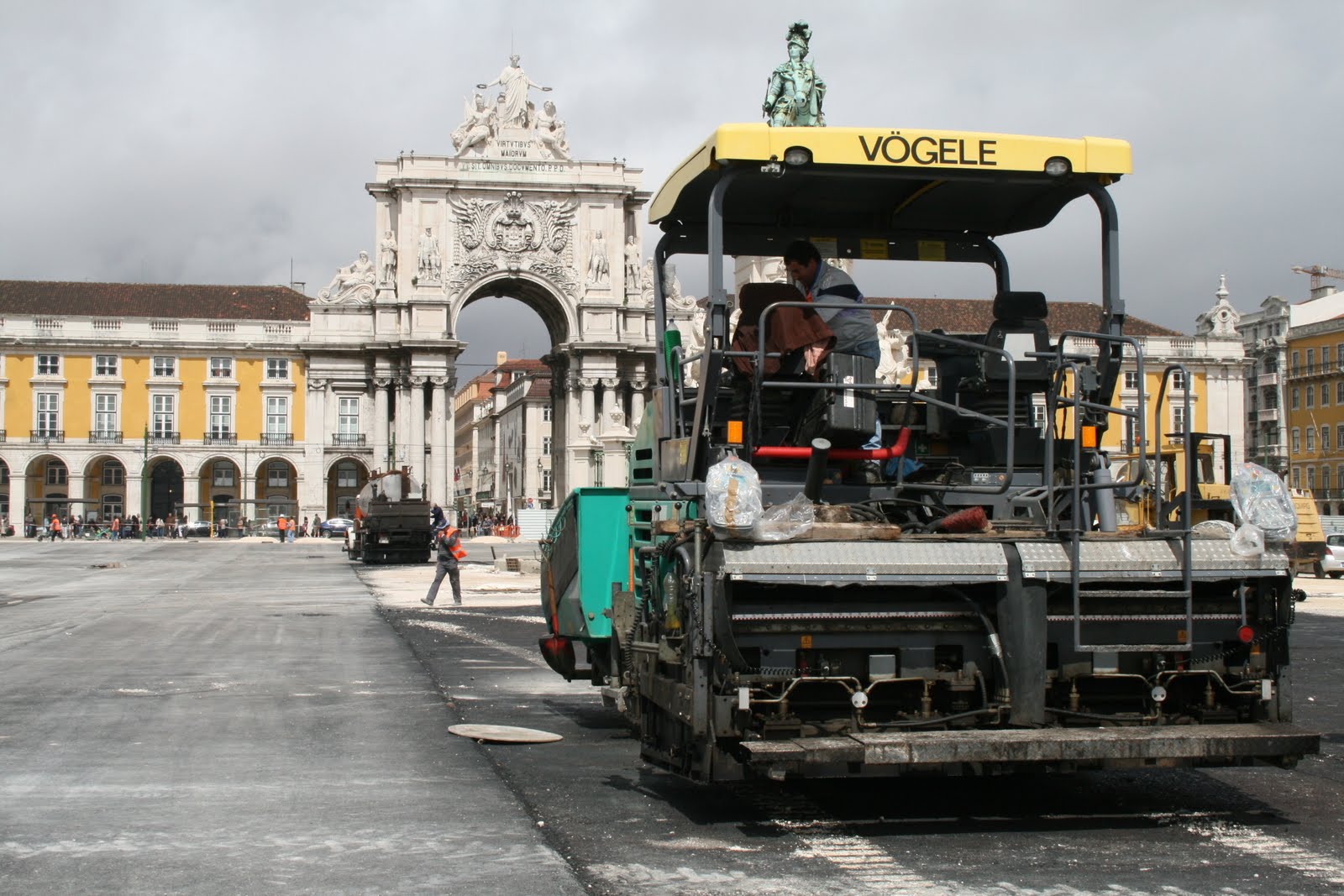It's the Caterpillar Lisbon. You know, not that little larval with many feet, but the large machine. It is the tourist square all filled with Caterpillars and people doing their work. I found the meeting between the beautiful square and the noisy Caterpillar to be almost poetic: